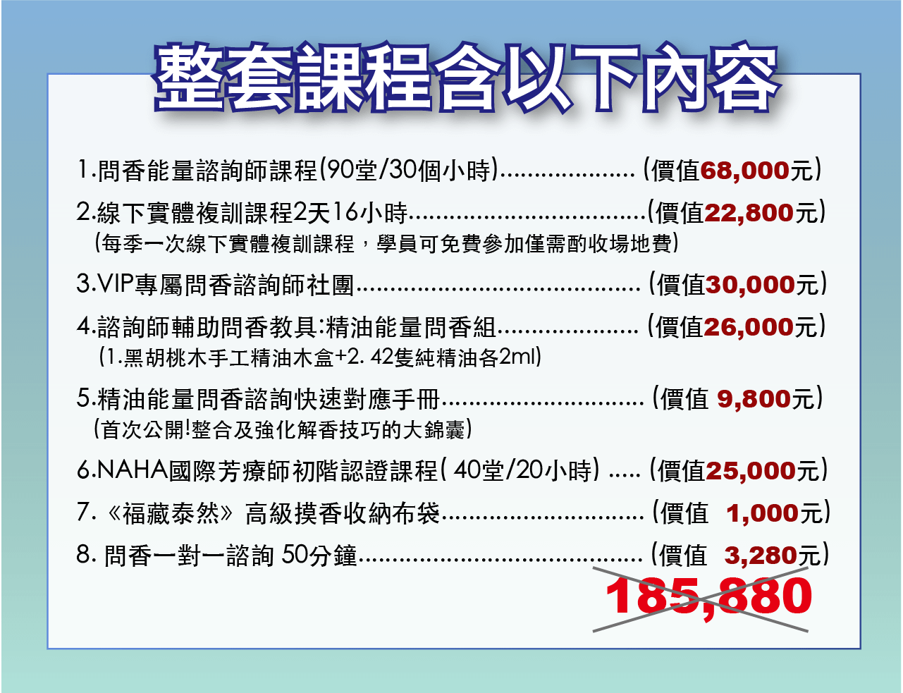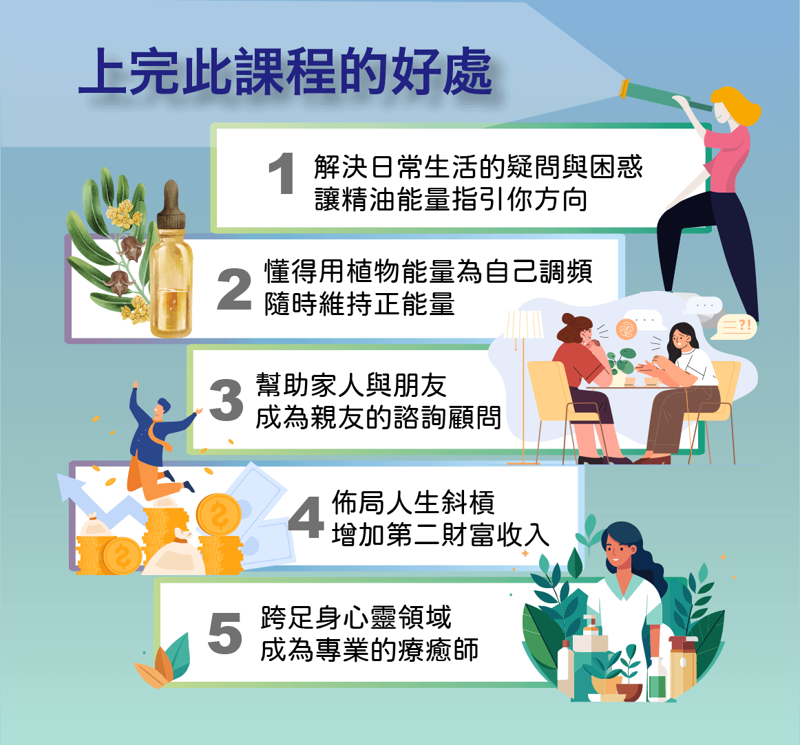 超過10,000個諮詢案例,諮詢時間超過20,000小時學員遍及大陸與台灣的李國禎老師,將複雜的精油問香知識系統化,邏輯化,入門者也能輕鬆易懂。過這門課程讓你深入了解精油與能量的連結,學習如何透過神奇的問香進行身心靈療癒,讓你成為療癒自己也療癒他人的專業諮詢師。