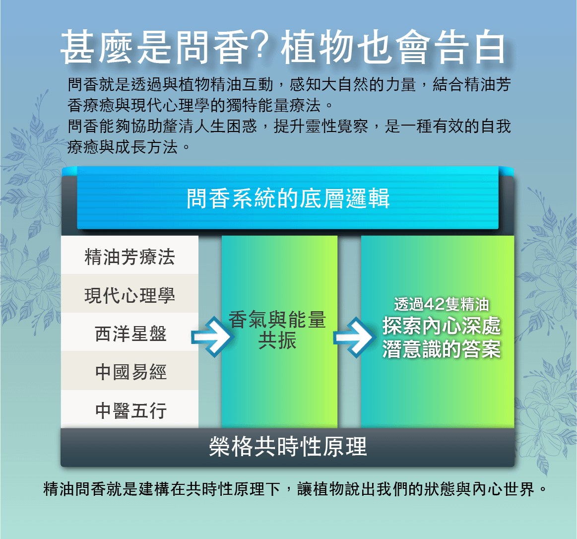 這一套結合精油與身心靈的能量共振系統,過去並沒有被完整建立,也很少人提及,在經過10年的實證+驗證後終於由國禎老師萃取精髓,完成系統建立。這套完整系統10年來共結合100,000個以上案例的大數據,紮實驗證而來。
